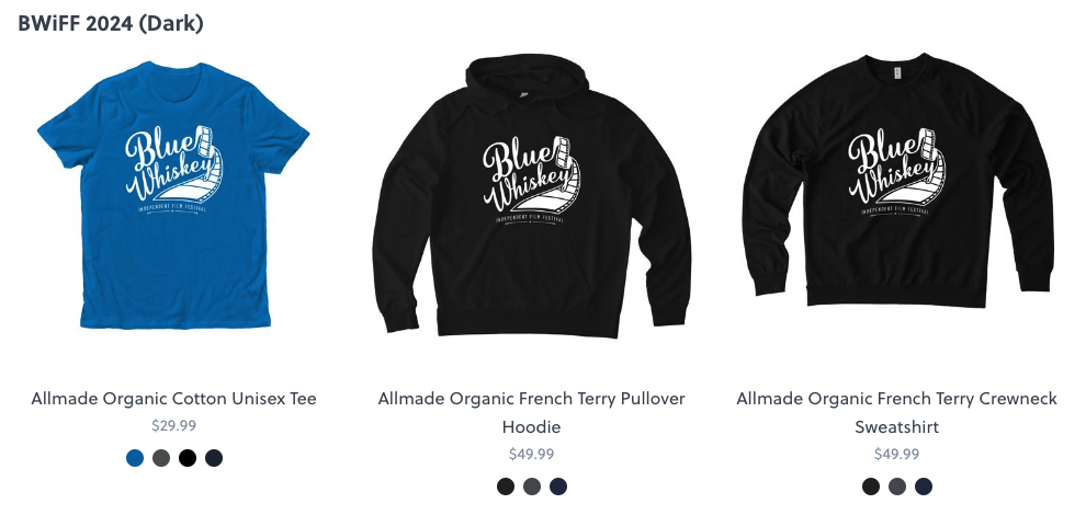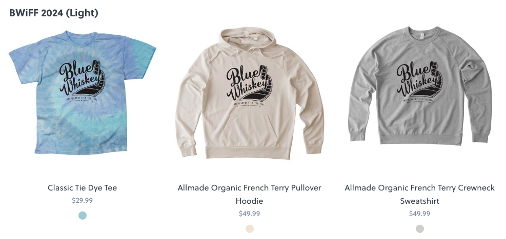 On Sunday, April 7, we launched our BWiFF 2024 apparel campaign through the festival's Bonfire store. The featured logo is a modified version of the 2020 campaign by graphic designer and illustrator Claire Cinquegrani. All apparel offered in the 2024 store feature material not previously offered.